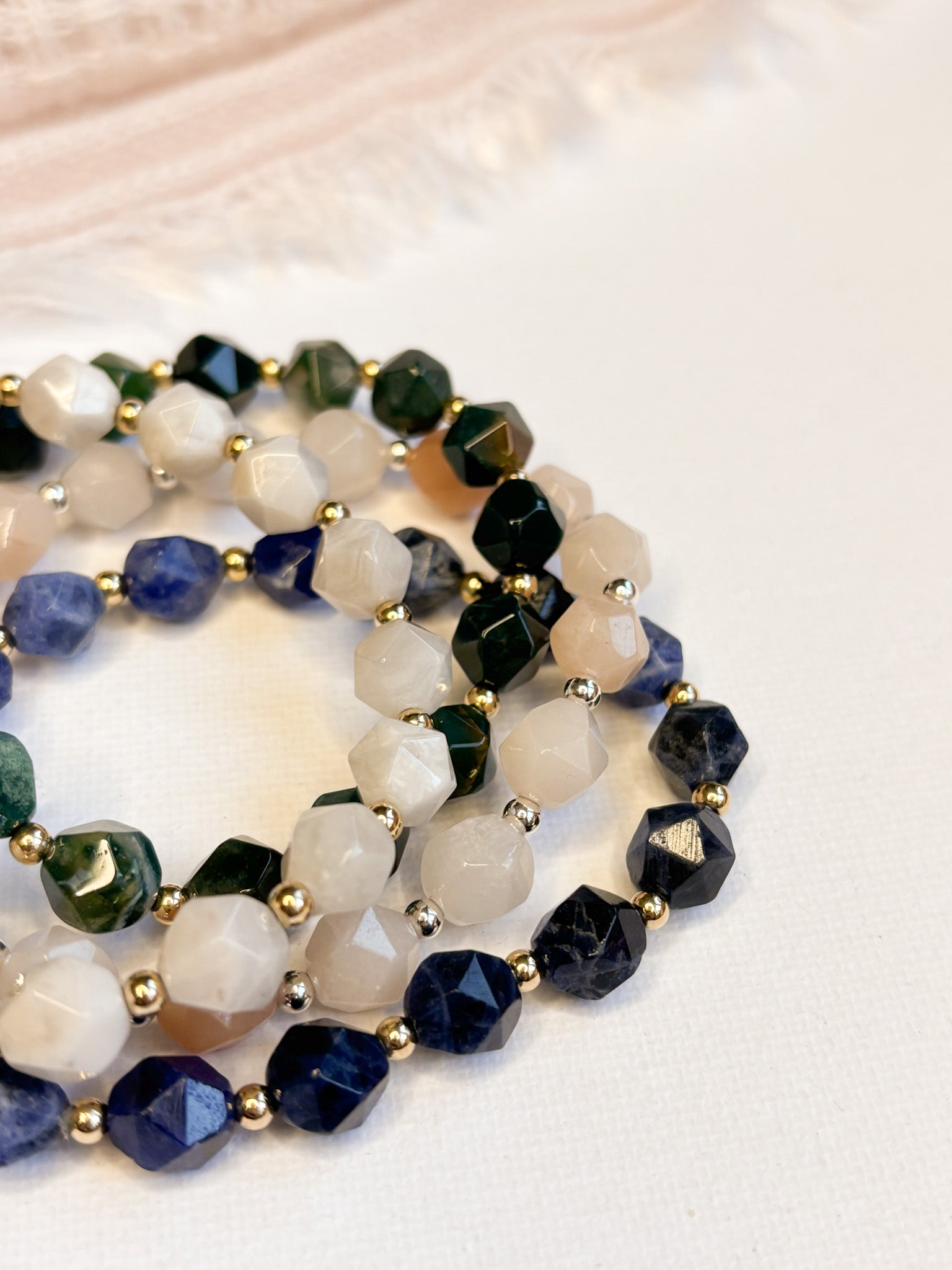 Elevate your everyday elegance with the Stella Bracelet, where star-cut gemstones catch the light with mesmerizing sparkle. Crafted with sterling silver or 14k gold-filled accents, this modern design transcends trends while maintaining timeless sophistication. Each faceted stone creates a luminous shimmer that transforms any moment into something special. Perfect for those who appreciate jewelry that balances contemporary style with enduring grace, the Stella Bracelet is the finishing touch your collection has been waiting for.
