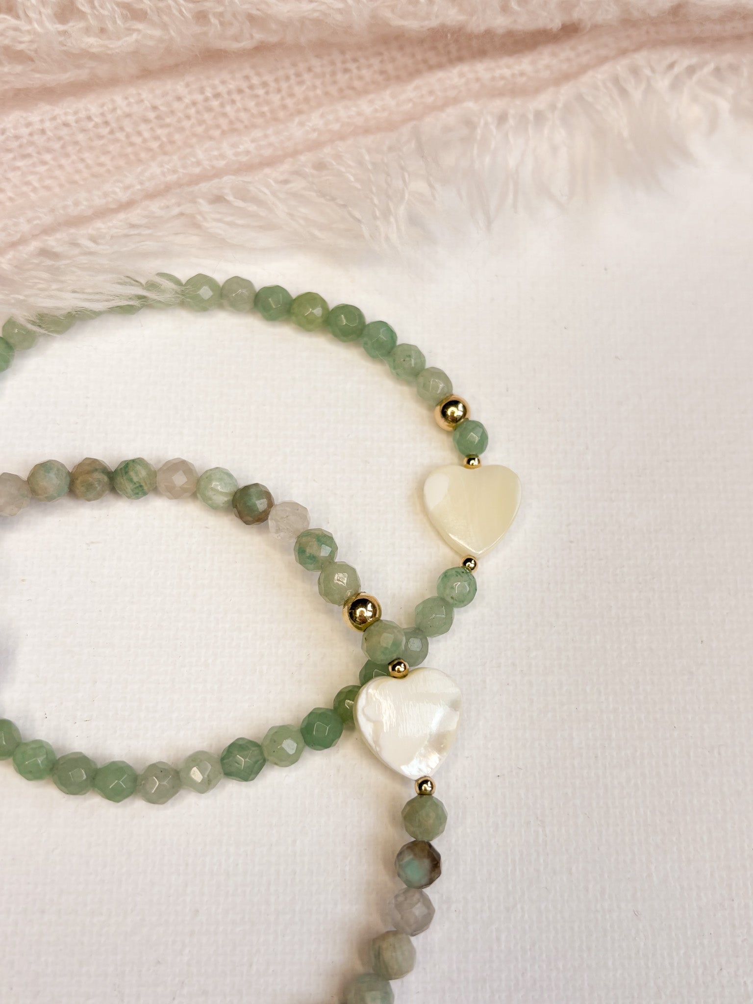 All bracelets are handmade with strong elastic cord. The natural gem stones and shell heart will have their own unique colour and markings, all bracelets are unique.