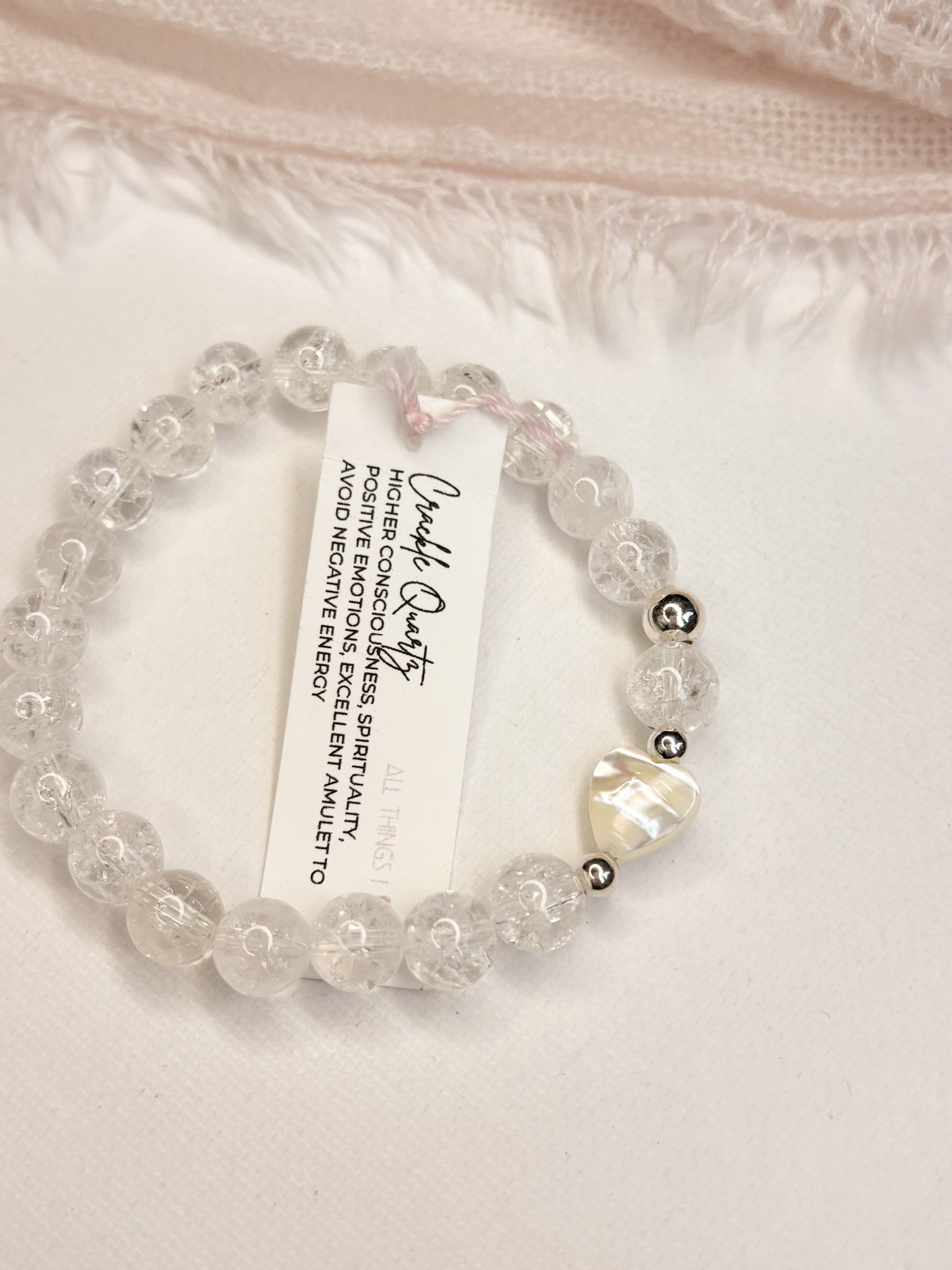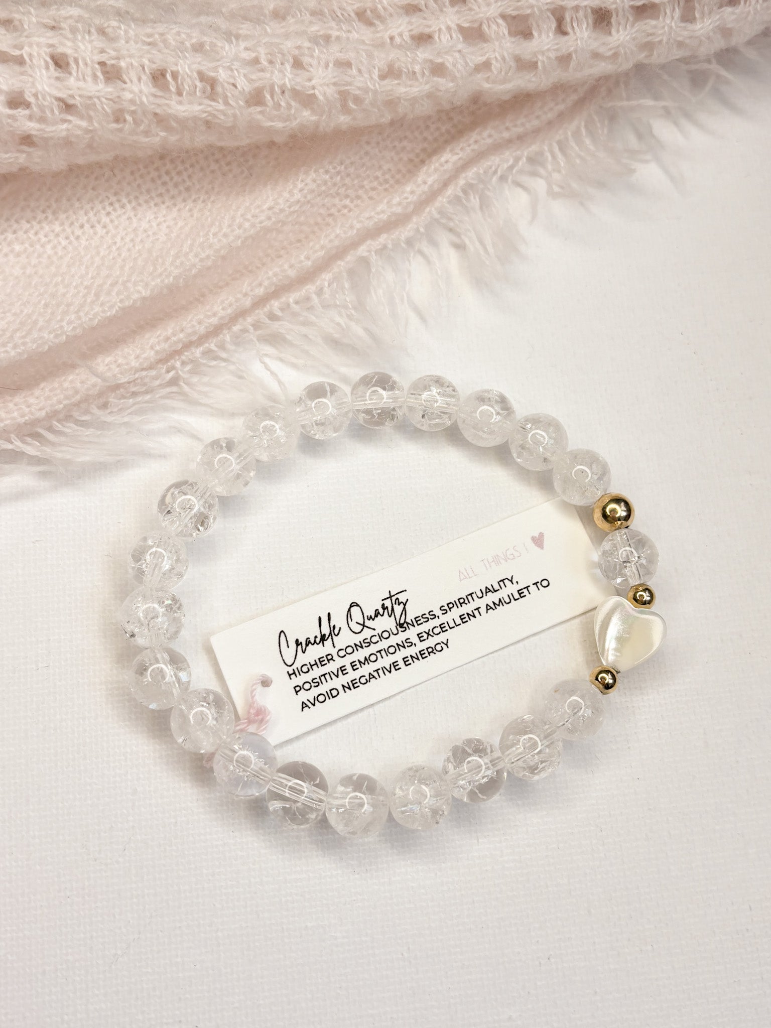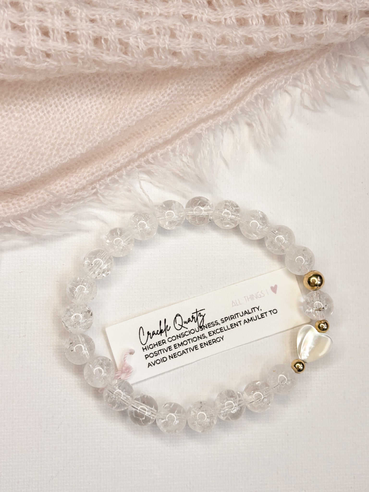 All bracelets are handmade with strong elastic cord. The natural gem stones and shell heart will have their own unique colour and markings, all bracelets are unique.