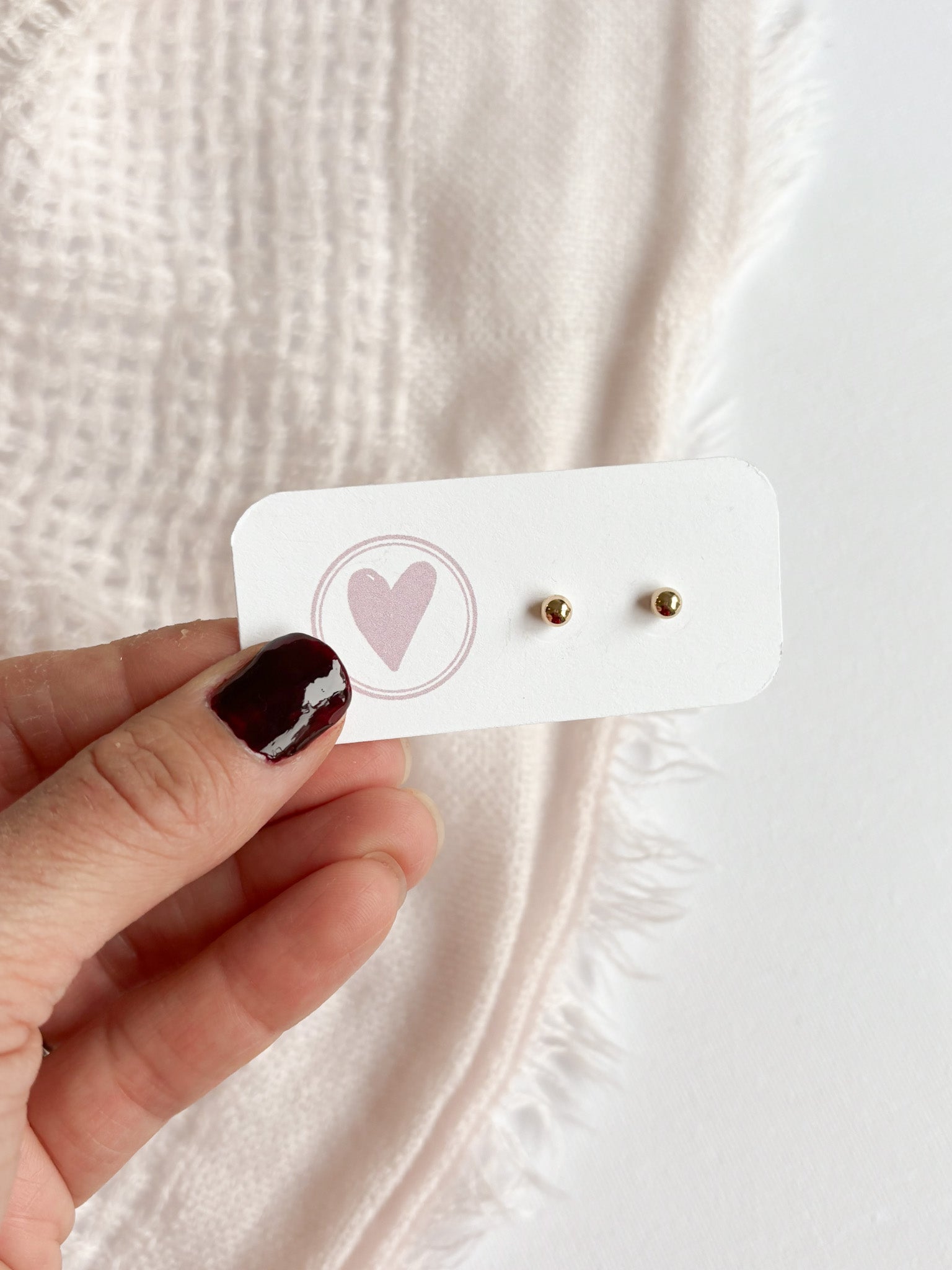 Your choice of ONE pair of 14k Gold Filled OR Sterling Silver Ball stud earrings. Butterfly Backings are included.